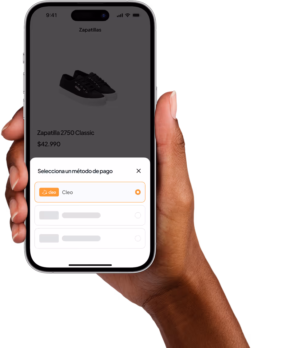 Your customer chooses to pay in installments during checkout, with no credit card needed—just their national ID. You get paid in under 48 hours and Cleo assumes 100% of the collection risk. We handle collecting installments from the customer and manage any late or missed payments.